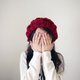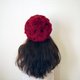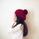 - 粗针麻花可拆毛球针织毛线贝蕾帽-经典红
