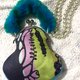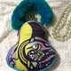 局部镶嵌的水晶珠饰,如夜光般点缀在图纹节点,象征情感被看见与珍藏的瞬间;搭配渐层蓝绿色绒毛提把,柔软而带有童话气息,使整体在前卫艺术与温柔触感之间取得平衡。