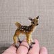 - 鹿宝宝 - 5 厘米。这个婴儿来自魔法森林。他温柔而颤抖。框架上钩编,涂油,填充聚酯纤维。头部和腿部可动。他会很高兴来到你善良的房子里,那里还有其他动物可以居住:)