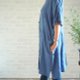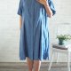 Dolman One Piece Short Sleeve Lithuania Linen Blue - 洋装/连衣裙 - 棉.麻 蓝色