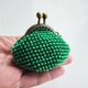 小巧可爱的零钱包,手工钩织,使用棉线与珠饰制作。尺寸约 7 厘米。