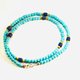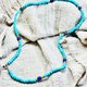 这条项链以 天然绿松石为主色,清亮蓝像夏日早晨的海面,加入少量深蓝色 西亚琉璃,呈现出细致却不喧哗的配色节奏。小颗古铜隔珠让整条项链更有温度,带着一点历史感与民族气息。