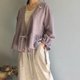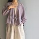 轻风吹过薰衣草园/灰紫色缇花/纯棉交襟罩衫荷叶下摆小外套上衣