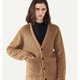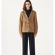 - 日本产进口羊毛混纺针织布,粗斜纹大毛圈组织,质感轻盈,风格鲜明独特。百搭单品-宽松衣型短开衫,落肩设计,领口,袖口下摆用定制彩条织带做内贴边,周身三针五线工艺精良,彰显品质,通勤和出街兼行。