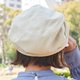 这是一款内衬使用有机棉、具有修饰小脸效果、适合春夏佩戴的设计款报童帽。