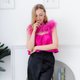 桃红色羽毛造型细肩带上衣,适合参加生日派对。