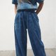 #宽裤 #靛蓝石洗 #极简风 #日常穿搭 #松紧腰裤 #手作风格 #复古时尚 #泰国设计 #Pinkoi推荐