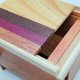 Top and Bottom panels : Keyaki wood (Yellow), Jindai Keyaki (Dark green), Purple heart (Purple),
