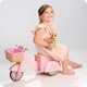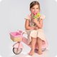 带着梦幻泡泡的粉红滑步车来啰!这台可爱造型的滑步车配上粉红色的柔美外观,让每次出门都是焦点。前方有一个可拆式手工藤编置物篮,搭配粉嫩格纹布内衬,不管是载小熊、买菜,还是外出购物都方便。附赠一组贴纸,让孩子自由装饰,打造专属的座骑。