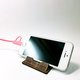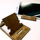 利用木头纹理与韧性,采用独特切割路径,让木头变得柔软且富有弹性,作为此随身手机架的翻折结构。