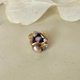 陶片上的手绘图案为京烧风格,搭配了菱锰矿(Inca Rose)与淡水珍珠。