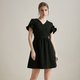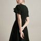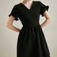 黑色连身裙,V领及花瓣袖两种不同的风格,尽显优雅性感一面