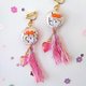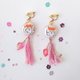 手绘 刺绣 耳环 丸子髮髻小人儿刺绣粒粒耳夹 耳勾