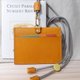 - 此款颈挂式名片夹/零钱包皮革选用柔软的意大利顶级植鞣革,富柔软性又耐磨,背面有缝制一个卡片收纳夹层,扎实缝制、精准裁切与边缘封边,完整呈现手工缝制的精致感。