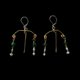 不对称吊坠式耳环,由手工凹制的黄铜搭配古代玻璃珠所组成。