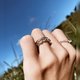以银饰制作为基础叠加天然矿石设计,作品有机流动的型态承载了宇宙、大地的微妙之美。透过创造与肌肤最为亲密的饰品,将其视为灵感、感官与记忆的载体,并致力于创作流入日常、可随心堆叠穿梭的艺术品。
