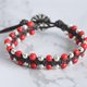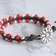 I used black real leather and added 2 different beads together into this bracelet: red corals & silver plated beads. The silver daisy flower closure makes the leather wrap bracelet for women looks so sweet.