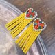 The Bijou of saturation is a deep, decorated with fringe of buckskin leather earrings (ear clip type). Calm colors and leather texture is the moderately suppressed adult finish the sweetness of the heart motif.