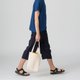 - 小巧的肩背托特,放本书、逛街都很合适的尺寸。 底部加宽,小小的包身但收纳空间很充裕 外贴袋、内袋各一 内袋上缘撞色设计,增添设计细节