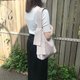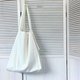 - We used cotton/hemp canvas fabric and created a sub-bag with a ribbon on the side. The ribbon is in a simple tassel shape, casually arranged on the side to be a focal point. The one-handle handle gives a clean impression.