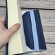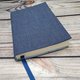 这款书套采用深蓝色丹宁棉布制作,内里衬以同色系的素色布料。书套内侧并附有深蓝色缎带书签。