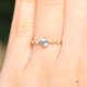 透过精准的切割工艺,能展现出媲美钻石的耀眼光芒。这款戒指完美融合了宝石的纯净感与碎钻点缀所营造的精致设计。