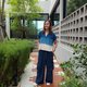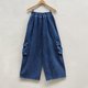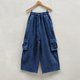 棉质靛蓝海军蓝染色石洗工装阔腿裤,有 4 个口袋。松紧腰部采用柔软的棉质面料,非常舒适。剪裁精美的阔腿裤,可爱的设计,酷炫的靛蓝染色石洗。