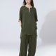 — 关于面料,选用做旧条纹铜氨丝,面料上自带肌理感,有斑驳做旧效果,像自然之力造就的天然纹路,岁月洗礼的痕迹,越旧越充满神秘感。铜氨丝面料柔软顺滑,非常适合贴身穿着,透气清凉,不易产生闷湿感,这件做了绿色和蓝色,给人以平和、舒适、安静的感觉。
