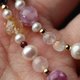 组成矿石:紫云母共生石英、粉东菱、白珍珠、粉珍珠、黑珍珠、月光石