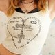 🍥 正面饰有亮片钮扣细节,以及十字项链爱心印花图案。