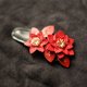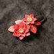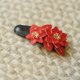 灵感源自清晨带着露珠的花朵,象征热情与承诺。两朵饱满的红色花朵并肩绽放,花瓣层叠舒展,形态优雅而灵动。在极致纯净的黑色皮革基底衬托下,这抹红显得愈发纯粹、庄重而热烈——它不仅是装饰,更是您整体新娘造型中,一个充满情感与力量的视觉锚点。