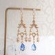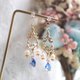 材料:S925闪石防敏感耳钉、淡水珍珠、电镀18k色巴洛克风吊环、18k金色闪石吊坠、蓝色渐变吊坠