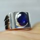 男款天然蓝宝石戒指 手工宝石戒指 圣诞装饰礼物 纯净深蓝色蓝宝石 饰品