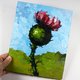 - Thistle Painting Floral Original Art Impasto Flower Artwork Small Oil Painting Wall Art by Nadya Ya 100% original hand painted fine art. The texture can be seen in the close-up photos. --- Original oil painting. --- Size: 10 x 8 inches / 25.4 x 20.3 cm. --- Material: oil paints, palette knife, canvas panel