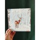 一只鹿一动不动地站在冬日的风景中。它的皮毛上覆盖着一层薄薄的雪,让它看起来冰冷而精致。鹿角上的雪与它那双凝视远方、富有表现力的深色眼睛形成了鲜明的对比,仿佛意识到了观众的存在,但并不担心。鹿皮毛上微妙的高光和阴影增加了深度和温暖,使其与背景寒冷、柔和的色调区分开来。