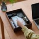 盒子宽度足以容纳A4尺寸的文件,并可堆叠成两层,深度各不相同。它们可以用来整齐地收纳容易杂乱的家居用品和业余爱好工具。它们可以放置在房间里作为“可见的存放”,也可以直接存放在架子上。