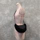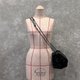 黑色丝绒条纹拼真皮圆形侧背包/斜孭袋