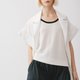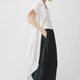 白色棉麻料西装领绑带外套,有工装贴带元素加上纯棉透气材质,落肩设计延伸至背后活褶,腰耳及可拆卸式腰带,是一件百搭的外搭式单品。