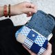 【京都奈口金包】风吕敷创意创作系列口袋亲子口金包-靛蓝市松