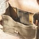 法国 1950 年代制作的军用肩背包,设计用来装弹匣。虽然已经数十年,但估计是还没发放就被收进仓库里头,看来像是全新。厚实的帆布、皮革和金属。尺寸挺小巧,可以拿来当作日常小包。