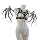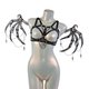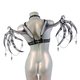 银黑色背带上衣由奢华弹力带制成,缎面饰面和白色五金配件。饰有链条和主题吊坠。可调式至完美贴合。带有链条的可拆卸翼片可以连接到任何胸罩肩带上。