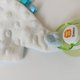 搭配压扣可固定奶嘴,让宝宝吸奶嘴的同时,手可以摸摸把玩缎带或颗粒豆绒,帮助宝宝入睡。