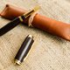 为了衬托出沁木手工笔的品质,沁木手作选择使用价格较昂贵的苯染蜡感牛皮来制作皮套。