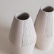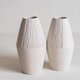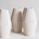 使用日本进口瓷土,以表面不上釉色的方式凸显土的原貌,雾白的瓷土、每笔手工切割的纹理、最朴质的触感,简约的花器原貌,褪去多余的缤纷霓虹灯彩,静静地摆放柜子、茶几,不用言语表达,却极致衬托花与叶的姿态。