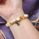 如初夏清晨的暖阳,黄阿赛与奶盖黄水晶交织出温柔层次,仿佛一杯刚煮好的奶茶,温暖又安心。点缀奥地利切割水晶与玻璃珍珠,透出微光流动的节奏感,展现轻盈却不失精致的气息。