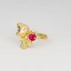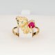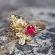 14 kt gold ring with ruby and diamonds. Strawberry gold ring.