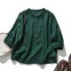 简约大人风可爱感 100 亚麻荷叶领上衣 轻盈透气、百搭单品、自然质感 深绿色 240323-5