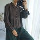 - →-深棕咖啡白格子织纹面料 →短版/木扣 →面料亲肤可单穿 70/20/10 ra/ny/wool
