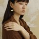 耳坠取银杏叶子的常规型,挂于耳垂下,正面看见的是从叶梗到叶面都完整呈现,叶面像女孩的裙摆有摆动的曲线形状,发射状的叶脉由细细的刻线完成。而有趣的是,两片叶子中有一片为完整扇形,而另一片叶子的叶摆中有意缺了一小块,这样挂于脸颊两侧,在平衡的修饰中又悄悄藏着巧思,等待被发现。是呢,自然之物这样的“不完整”才是它最想诉说的话语。