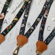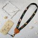 黑色系Y型减压韩国双色花布真皮手机颈挂绳 - 挂绳/吊绳 - 棉.麻 黑色